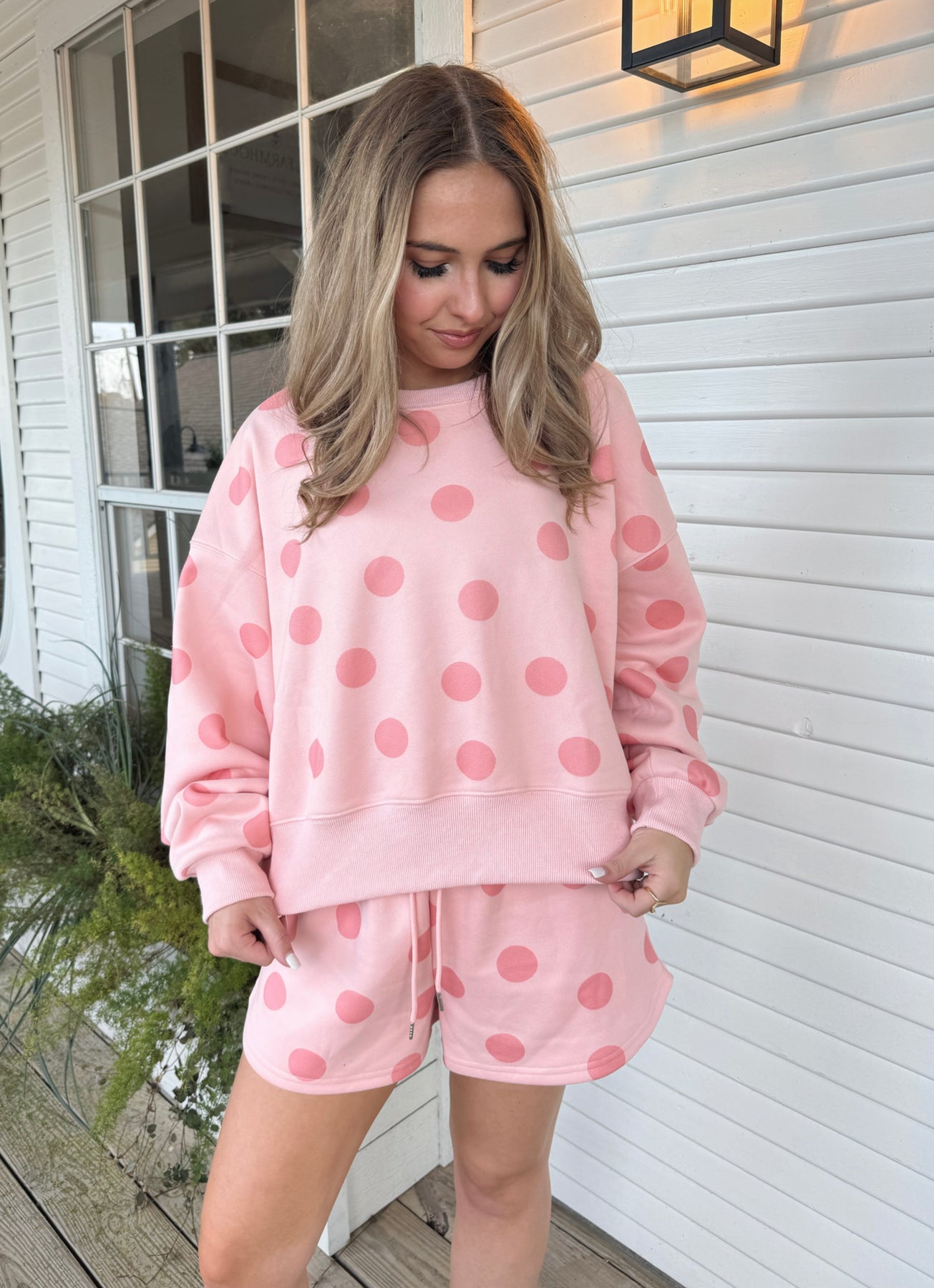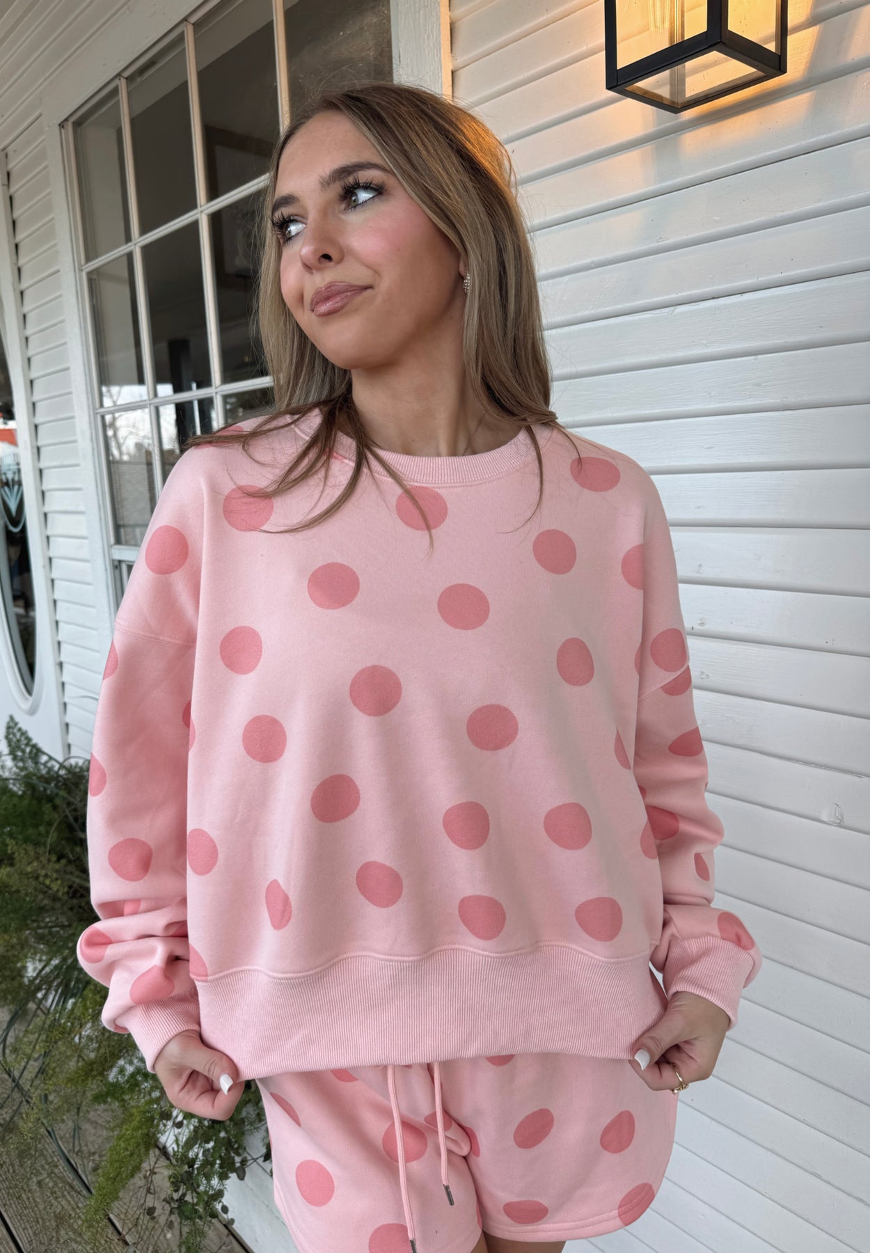 The Pink Polka Dot Sweatshirt features a playful design with polka dots on a soft pink fabric, offering a comfortable fit for everyday wear. This garment is crafted from high-quality materials, ensuring breathability and durability. Ideal for layering, it enhances casual outfits while providing warmth in moderate temperatures.
