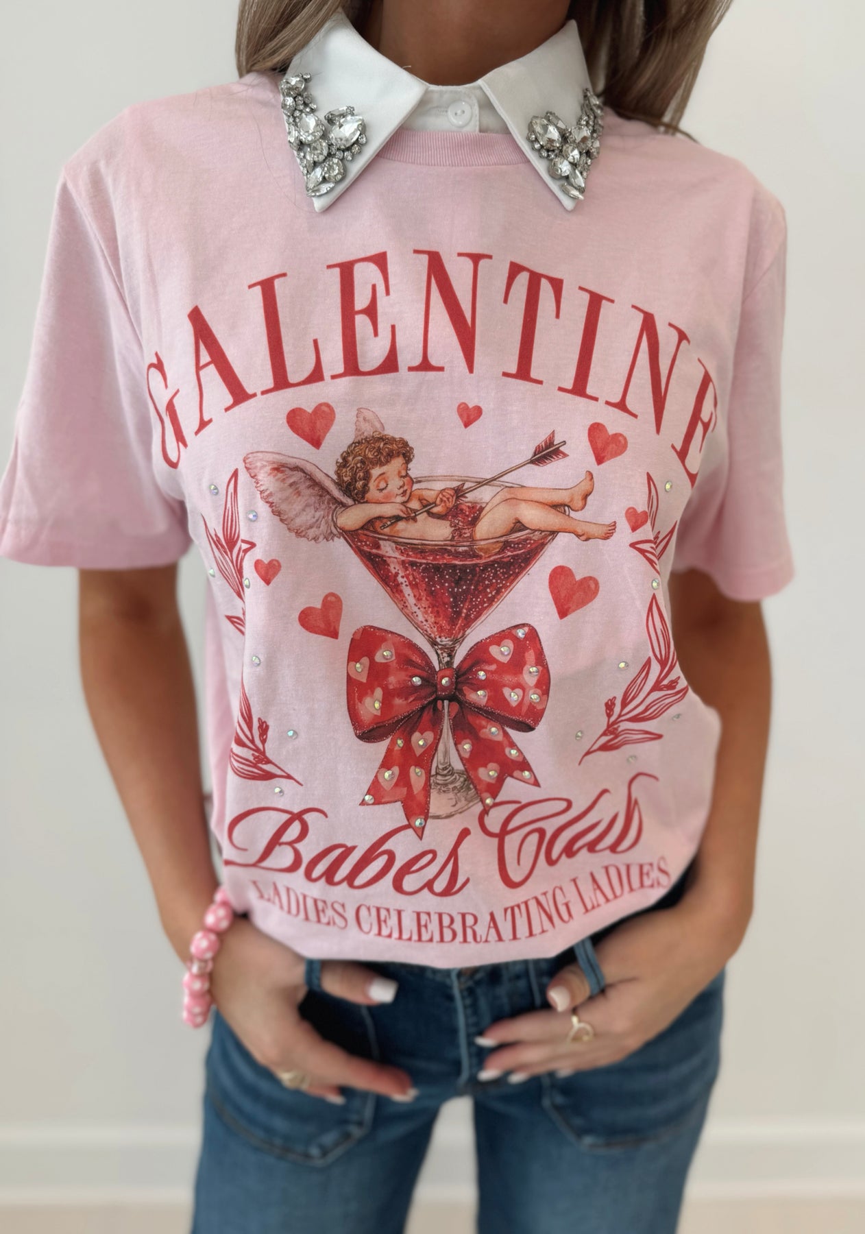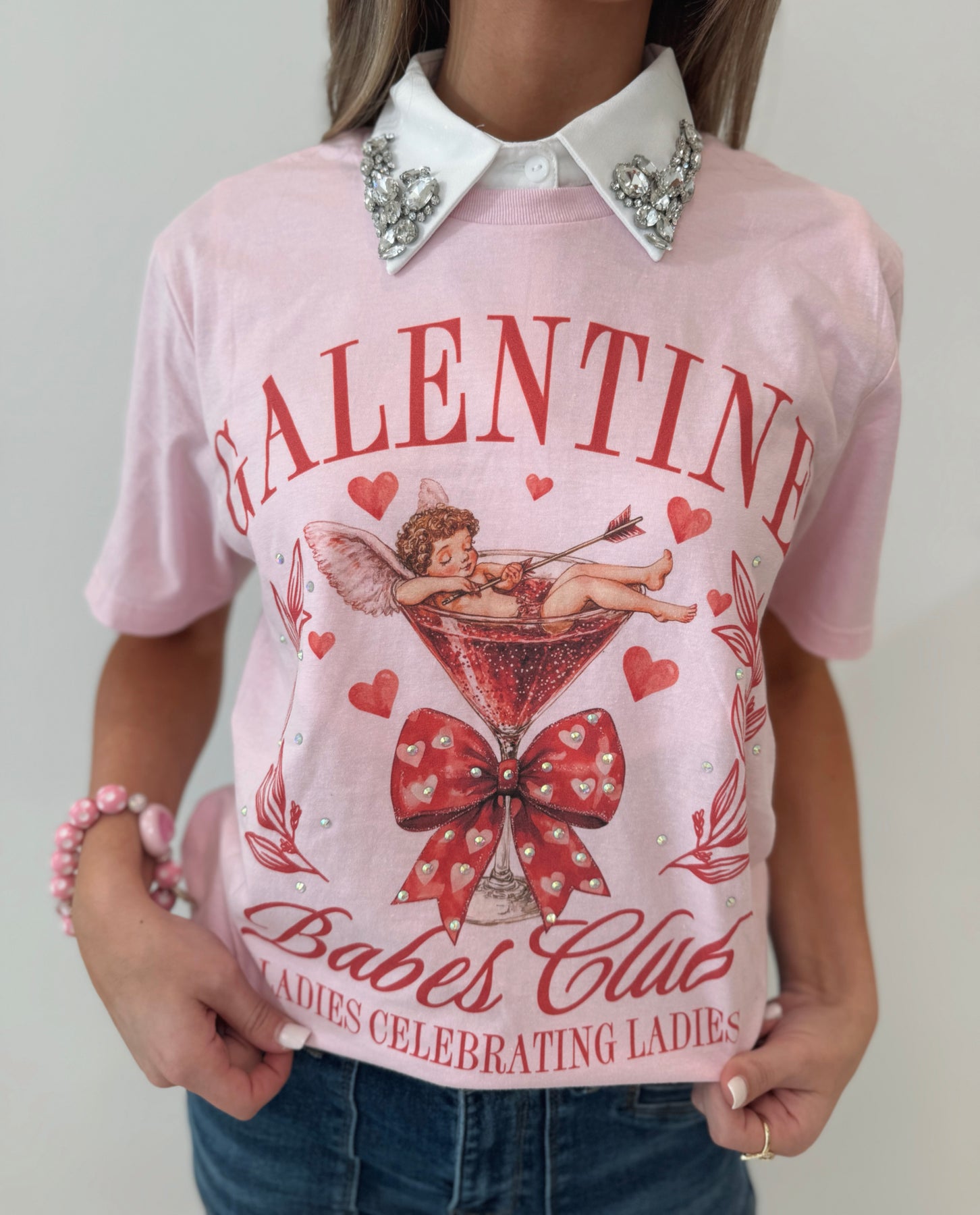 Celebrate Valentine's Day in style with the Valentine Martini Social Club tshirt! This darling top is not only super comfy, but also features rhinestone embellishments for a touch of glamour. Perfect for a trendy and fun night out with your loved ones.
