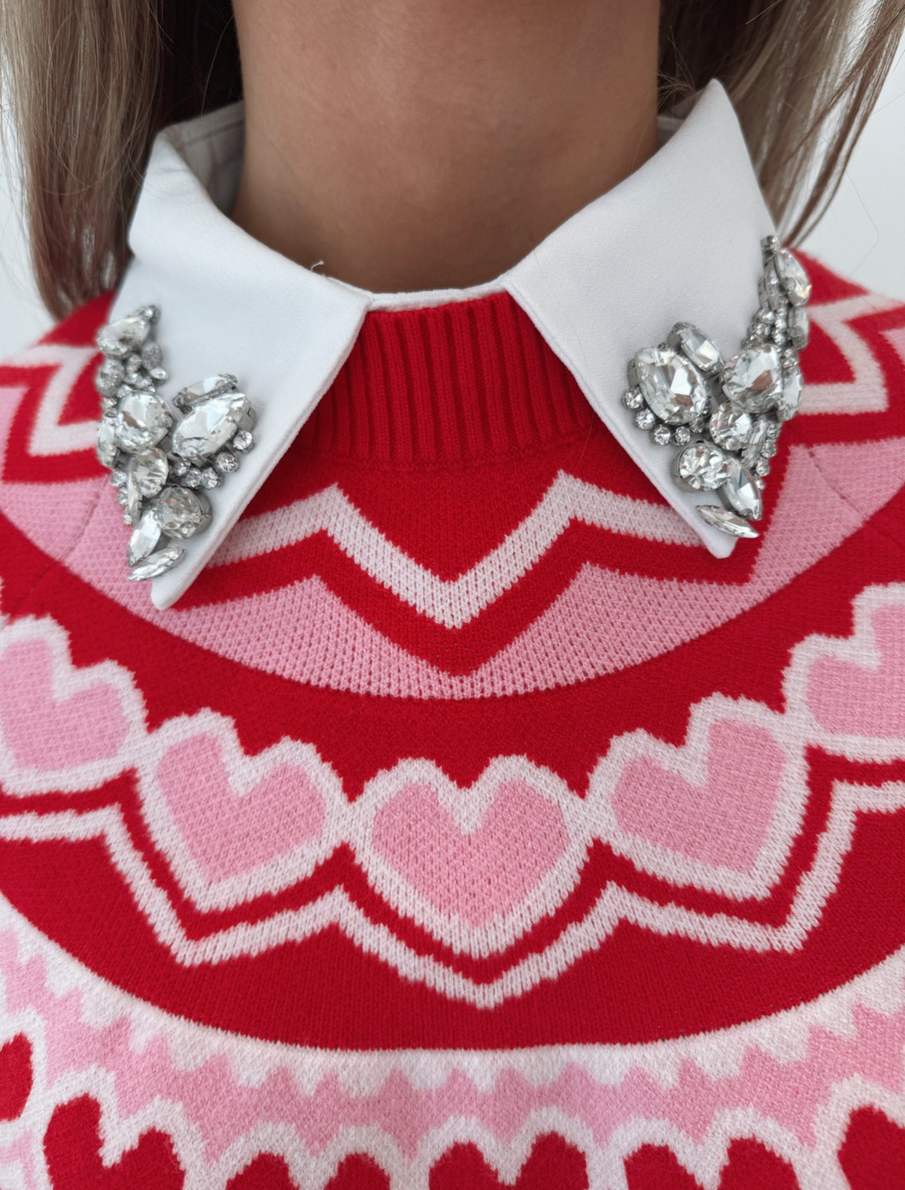 The White Rhinestone Collar is designed for versatility and comfort, featuring adjustable straps for a tailored fit that accommodates all sizes. Its sleeveless half shirt structure ensures a streamlined appearance under clothing, making it a practical choice for layering while adding a touch of elegance with its decorative rhinestones.